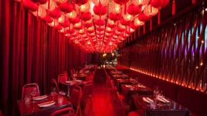 Grand bar urbain et restaurant asiatique, décor sur le thème des années 20 avec éclairage d’ambiance, cocktails et DJs.