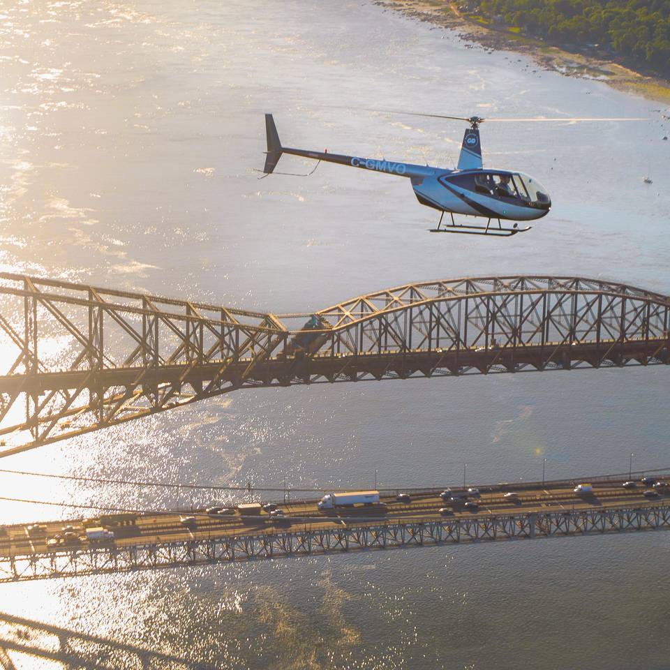 Les travaux annoncés sur le pont Pierre-Laporte entre Québec et Lévis au cours de l’été font craindre le pire pour les automobilistes qui doivent effectuer des déplacements interrives quotidiennement. GoHelico, appartenant au Groupe Huot, en collaboration avec le Centre de parachutisme Atmosphair et l’Aérodrome de Pintendre, offrira une alternative à ceux qui souhaiteront éviter le trafic et faire les choses autrement. Des navettes à bord d’hélicoptères seront offertes à moindre coût sur les heures de pointe du 27 juin au 7 juillet et du 8 au 18 août inclusivement soit pour la durée des travaux.