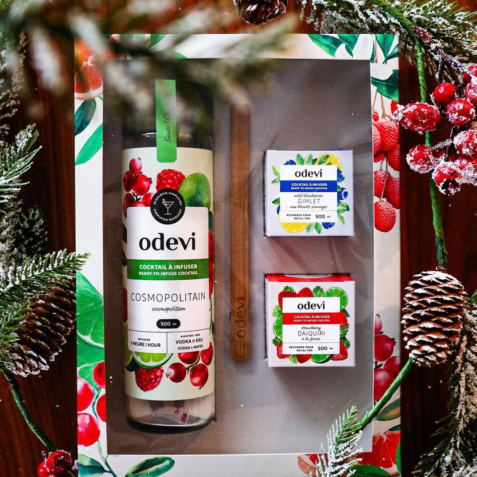 Le très réputé restaurant L’Atelier vous permet d’offrir son savoir-faire en cadeau pour rehausser vos cocktails. Le livre L'Aventure de la mixologie rédigé par Patrice Plante, le fameux Monsieur Cocktail, révèle tous les secrets des recettes maison du restaurant en plus des classiques essentiels à maîtriser. Vous pouvez vous le procurer dans la plupart des librairies au Québec. Pour ceux qui apprécient les cocktails sans devoir sortir l’arsenal, les cocktails infusés Odevi ont été créés en collaboration avec les mixologues de L’Atelier afin de vous faciliter la vie. Margarita, daiquiri, cosmopolitain et bien d’autres concoctions pourront donc être montées en deux temps trois mouvements! Les cocktails Odevi sont disponibles en ligne et dans plusieurs épiceries du Québec.
