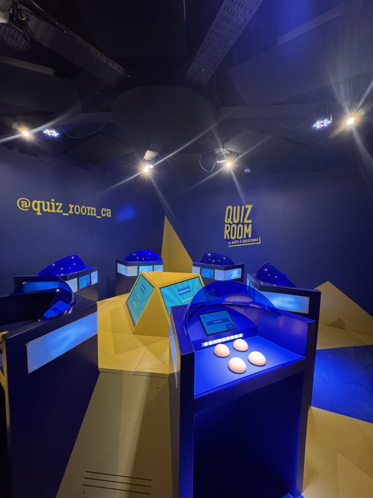 Nous avons eu la chance de tester la toute nouvelle activité de style jeu-questionnaire télévisé au Quiz Room Québec, un quiz qui propose plusieurs thématiques variées comme le sport, la musique, le cinéma, la société et plus encore! C’est une expérience vraiment agréable et plaisante qui permet de jouer en équipe ou en version seul contre tous.